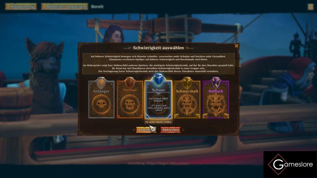 Leider gibt es einen Punkt, den ich extrem schade finde, denn es gibt KEINE Untertitel, weder für Hörgeschädigte noch normal. Gerade da alle Cutscenes auf Englisch sind, könnte man so etwas erwarten. Man darf ja nicht vergessen, dass es so gewisse Standards in Videospielen mittlerweile gibt und Untertitel gehören meines Erachtens nach dazu. Die normalen Gespräche laufen zwar in Textboxen ab, aber gar kein Untertitel ist extrem frustrierend. Gerade dann, wenn der Sound echt furchtbar ist. Es hört sich alles an, wie frisch aus der Blechdose. Ich musste sogar einmal checken, ob ich die Boxen meines Monitors aus Versehen ausgewählt habe. Die Grafik ist zwar okay, aber auch hier wurden keine Sprünge gemacht. Gerade wenn man sich ein Game wie »Wolcen – Lords of Mayhem« anschaut, kann man viel machen. Dafür, dass die Grafik aber nicht umwerfend ist, läuft es unwahrscheinlich gut und auch Spieler mit eher schwächeren Rechnern können hier gut zugreifen. Außerdem ist das Spiel auch für die Nintendo Switch erschienen.