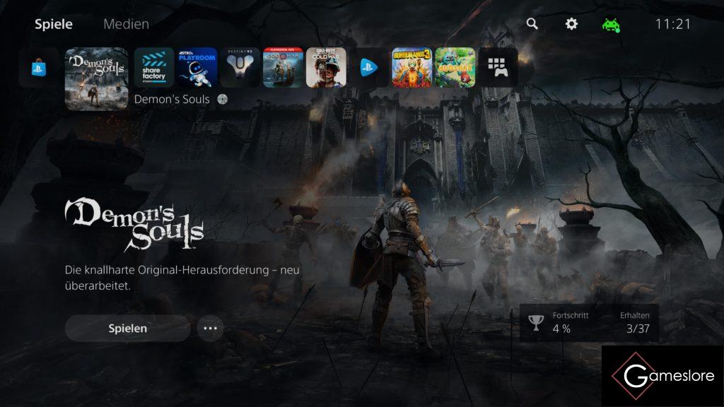 Aber jetzt wollen wir uns mal angucken, was die neue Konsole von Sony so in Sachen User Interface zu bieten hat. Und hier hat sich einiges getan. Aber immer zum Guten? Gucken wir mal. Als Erstes wird uns der Home-Bildschirm angezeigt. Hier sieht man schon ganz klar eine Veränderung. Es wirkt zwar klarer, aber ohne Struktur. Man sieht die installierten Spiele und dazugehörigen Apps sowie den Playstation Store. Das ist zwar auch übersichtlich, aber ich hätte schon ganz gerne die Option, wieder Ordner anzulegen. Aber ok, gehen wir mal weiter. Es gibt eigentlich auch zwei Home-Bildschirme. Wie haben oben nämlich noch den Reiter Medien. Hier findet ihr eure Musik und Streaming Apps. Das ist soweit auch selbst erklärend. Oben rechts im Bild findet ihr dann eine Suchfunktion sowie den Punkt „Einstellungen“, eurer Profil und die Uhrzeit. Gute Bildschirmaufteilung und wenn man sich dran gewöhnt hat ,saust man nur so durch die Benutzeroberfläche. Das geht auch dank der SSD alles super schnell und ohne Ruckler oder dass das Bild kurzzeitig einfriert. Ja, auch während im Hintergrund ein Spiel läuft. Ich hoffe das bleibt auch so.