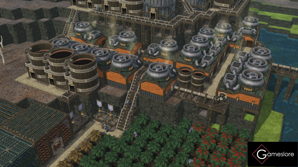 Die Optik der einzelnen Gebäude ist immerhin pro Rasse unterschiedlich, sodass neben den unterschiedlichen Gebäuden, wobei die meisten doch recht ähnlich sind, anders gebaut werden muss. Ein bisschen Varietät gibt es also sowohl mechanisch als auch Design-technisch. Der Grundbau, also Wasservorräte, Essen- und Holzanbau, bleiben aber gleich.
