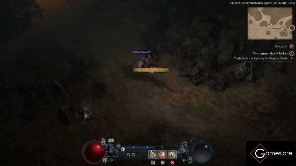 In Richtung der Quest „Die versiegelte Tür“ droppt euch ein Gegner ungefähr hier: