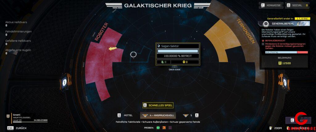 Für diejenigen, die sich wundern, warum ich das alles verallgemeinere und von Spielern rede. Das ist ganz einfach, denn ihr spielt die „Kampagne“ quasi mit allen Helldivers 2 Spielern zusammen. Nachdem ich jetzt aber geklärt habe, worum es geht und was passiert, bewegen wir uns jedoch erste Mal aufs Schlachtfeld.