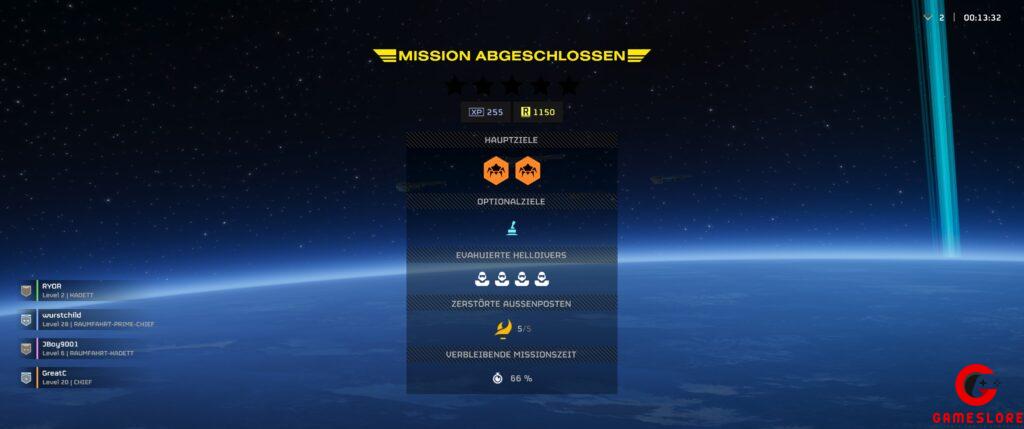 Nachdem ihr dann fertig seid, mit den Missionen oder aber zumindest die Primärziele abgeschlossen habt, geht es zum Extraktionspunkt. Dort könnt ihr dann die Extraktion rufen, die euch hoffentlich aus dem Missionsgebiet rettet. Allerdings müsst ihr erst einmal zwei Minuten ausharren, bevor das Dropship landet und euch einsammelt. In der Zwischenzeit, seid ihr heftigen Angriffen ausgesetzt und müsst euch verteidigen. Wenn ihr zu viel getrödelt habt, geht euch auch noch die Zeit aus, das bedeutet, dass euch kein Support mehr zur Verfügung steht und eure Taktikausrüstungen und eure Wiedereinstiege nicht mehr funktionieren. Ab hier zählt jeder Schuss und jeder Helldiver. Solltet ihr alle sterben oder es nicht alle zur Extraktion schaffen, gilt die Mission trotzdem als erfolgreich, allerdings bekommt ihr nicht die volle Punktzahl und keine Proben. Außerdem müsst ihr extrahieren, um den nächsten Schwierigkeitsgrad freizuschalten.