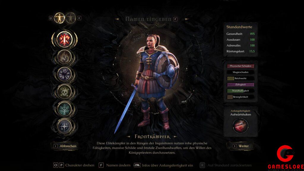 So weit so gut. Du suchst dir also eine Klasse aus und ja hier gilt, wer die Wahl hat, hat die Qual, denn alle Klassen sehen interessant aus: Frontkämpfer, Flammenweber, Zauberbändiger, Nachtschatten, Waldhüter & Rächer.