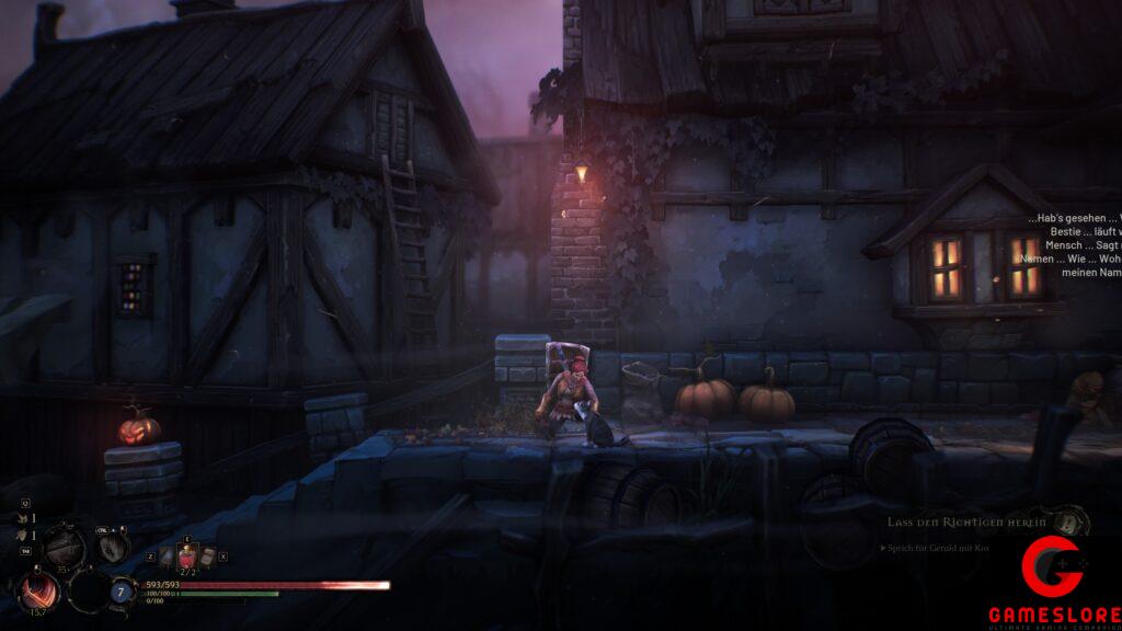 Mit der Waffe deiner Wahl oder auch Relikt, falls du zauberkundig spielen möchtest, gehst du zu Beginn bei den ersten einfacheren Gegnern noch recht zügig voran. Vielleicht wirst du auch übermütig, denn das Spiel scheint es nicht ganz so schwer mit dir zu meinen.