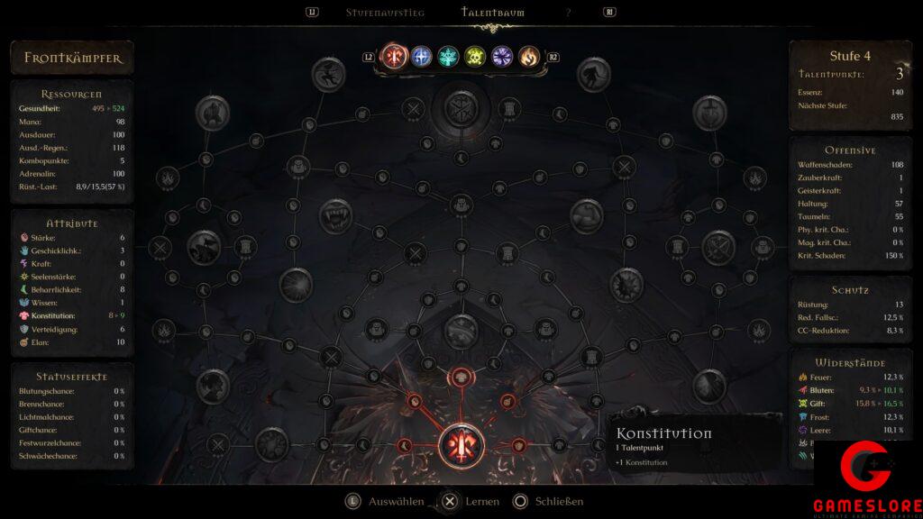 Tiefer Skill-Tree: Über 200 Fähigkeiten, großes Potenzial für Builds und Anpassung.