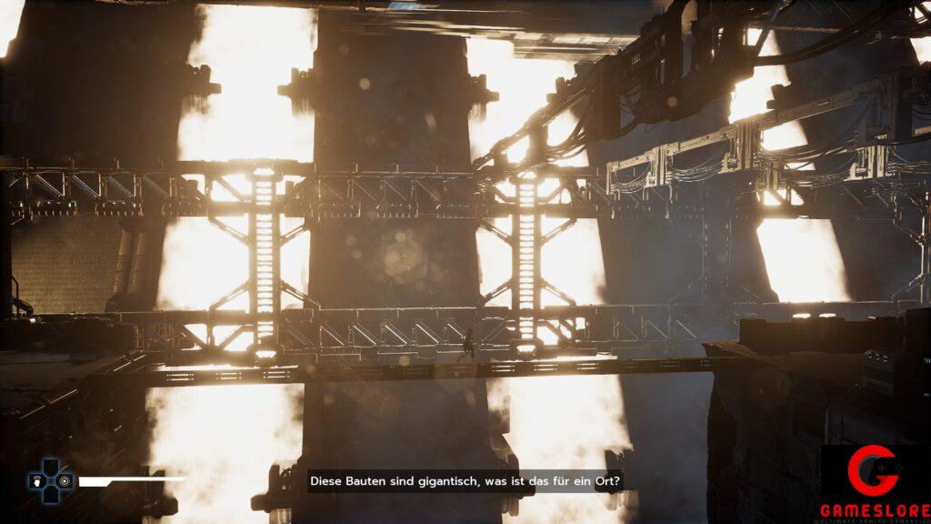 Das Erste, was dir im Spiel auffallen wird, sind gigantische Konstruktionen, die so gar nicht menschlich wirken. Alles ist einfach viel zu groß und auch zu fortschrittlich, um von Menschen geschaffen zu sein. Und du triffst auch nicht so schnell auf eine dir bekannte Zivilisation, denn diese scheint ausgestorben zu sein. Einen Grund hierfür kannst du dir dann schon fast denken, wenn du auf die großen Konstrukte triffst, die voller Eifer versuchen, dich auszumerzen.