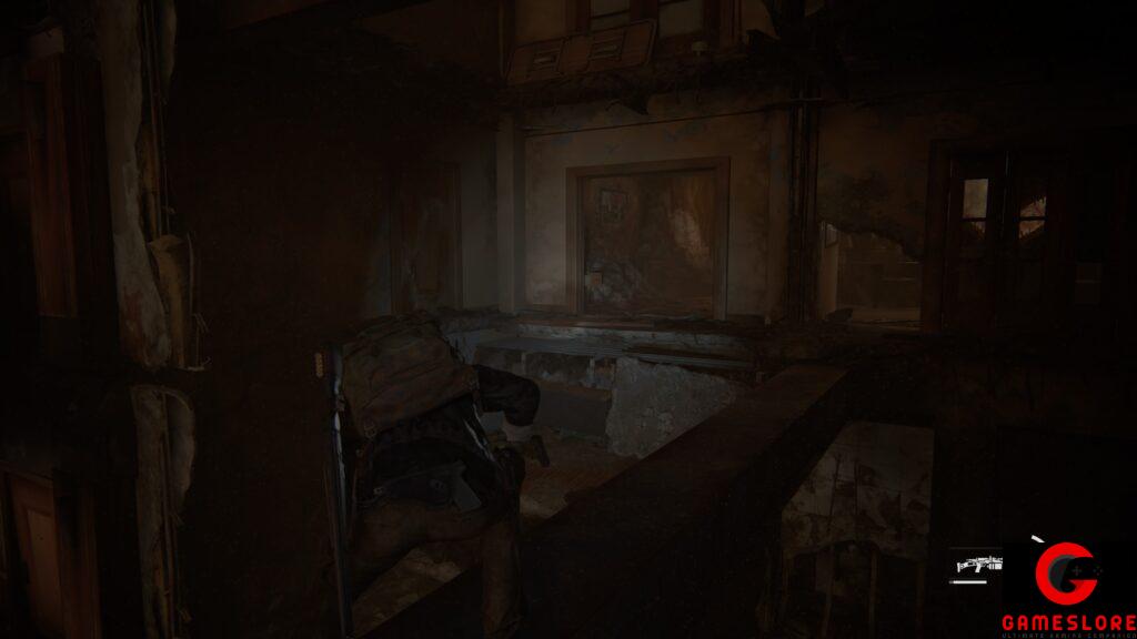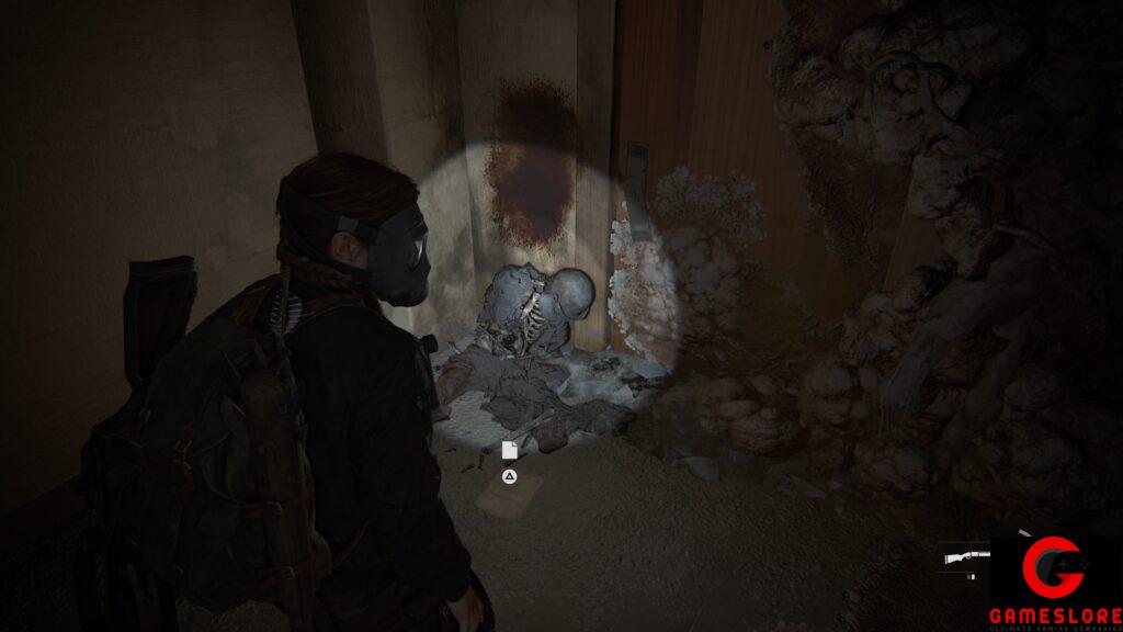 Sobald du dich am Seil heruntergelassen hast, das dir Lev zur Verfügung stellt, kannst du rechts durch ein Loch klettern und findest an einer Leiche die Notiz.