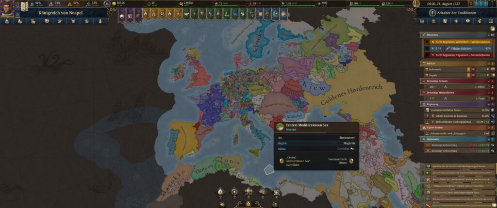 Europa Universalis V ist kein Spiel, das man einfach nebenbei startet oder in kurzen Sessions „mal eben“ spielt. Wer hier einsteigt, sollte sich bewusst sein, dass dieses Spiel Zeit, Geduld und eine gewisse Bereitschaft verlangt, sich mit komplexen Systemen auseinanderzusetzen. Der Weg zum Verständnis ist lang, und gerade am Anfang fühlt man sich schnell überfordert. Das gehört hier schlicht dazu.