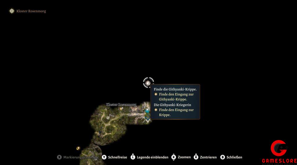 Zorru macht euch auf eine Gruppe Githyanki aufmerksam. Sucht im Gebirgspass im Nordwesten nach einer Gruppe samt Drachen. Verhandelt mit Kith’rak Voss und sucht dann die Krippe auf (Vorsicht: Hierfür braucht ihr ein recht hohes Level).