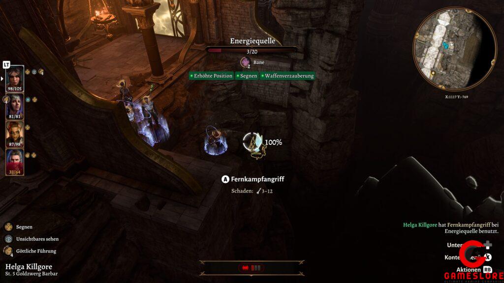 Versucht innerhalb der 3 Runden in das Portal zu springen und hier könnt ihr euch dafür entscheiden, eurem Beschützer zu helfen. Dann müsst ihr alle Githyanki ausschalten.
