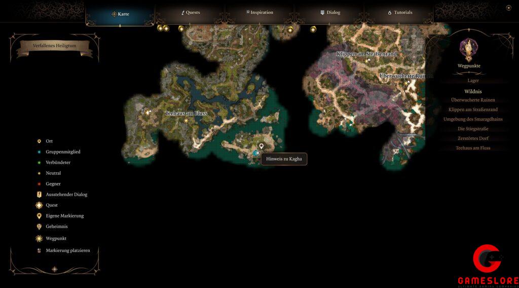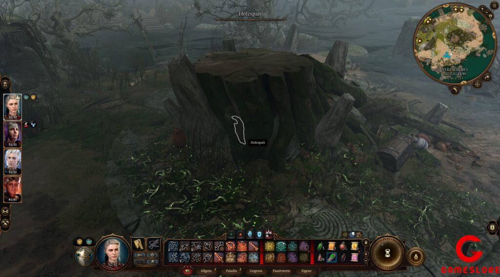 Sobald ihr an besagtem Treffpunkt im Sumpf (verfallenes Heiligtum) angekommen seid, könnt ihr ein Stück Baumrinde entfernen und schon findet ihr heraus, für wen Kagha eigentlich arbeitet.