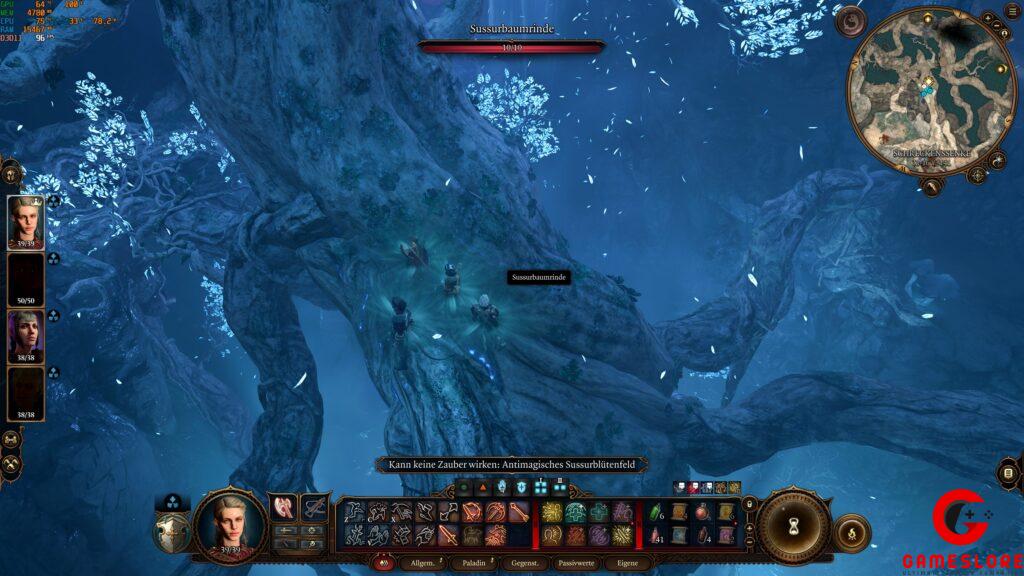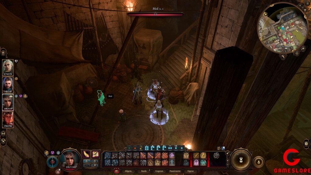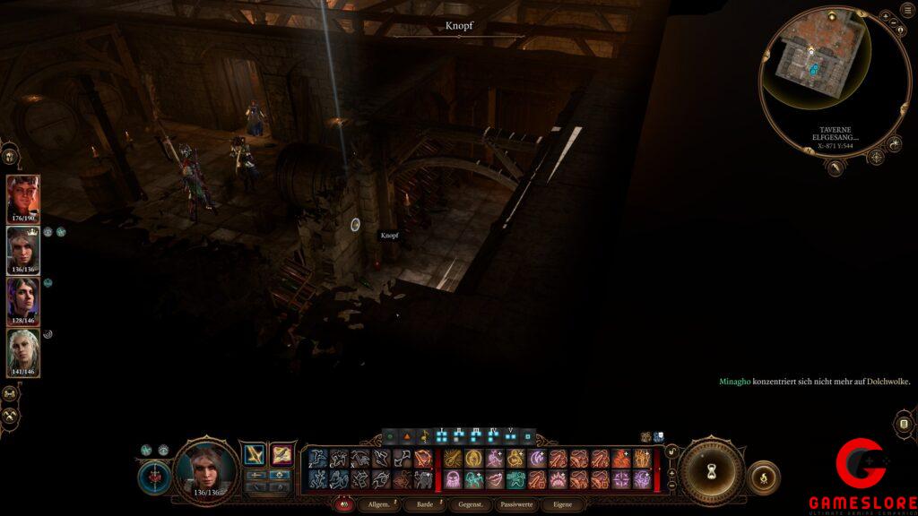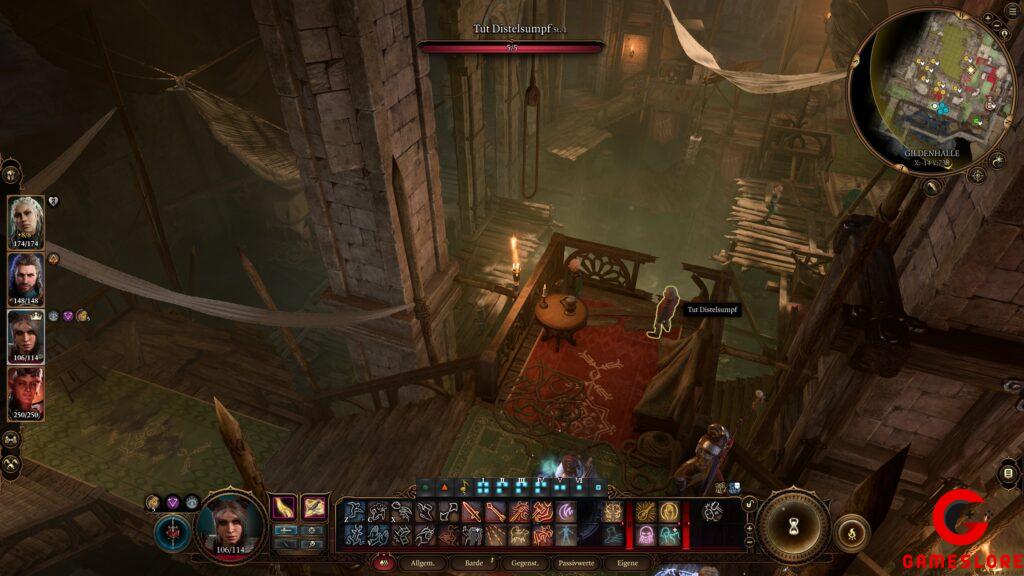 Dieser versucht recht zügig zu fliehen und ihr folgt ihm in die Tiefe. Doch bevor ihr ihm folgt, solltet ihr noch die Quest „Hebe den Schattenfluch“ vorantreiben. Hierfür benötigt ihr dringend Halsin, der euch auch einen ersten Hinweis zu Thaniel gibt, der den Schattenfluch aufheben kann. Im letzten Gasthaus gibt es eine Person, die rechts im Gebäude auf einem Bett liegt und vor sich hin summt.
