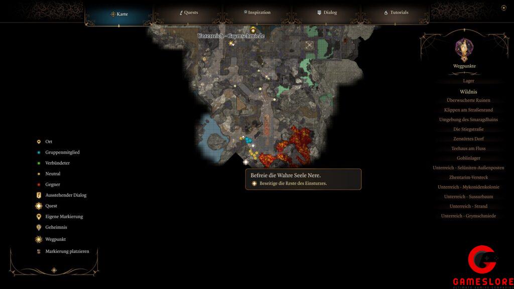 Hier könnt ihr nicht viel Falsch machen. Geht einfach immer weiter, bis ihr zu guter Letzt an der Helm ankommt. Ihr müsst auf dem Weg einige Gegner bekämpfen, die vor allem aus einer Mischung aus Fern- und Nahkampf leicht zu besiegen sind. Auf dem Weg erhaltet ihr noch Hilfe von einer Githyanki (Lae’zel) und Schattenherz. Um Schattenherz für euch zu gewinnen, müsst ihr sie aus einer Kammer befreien (s. Nebenquest: Rette die Gefangene des Illithiden