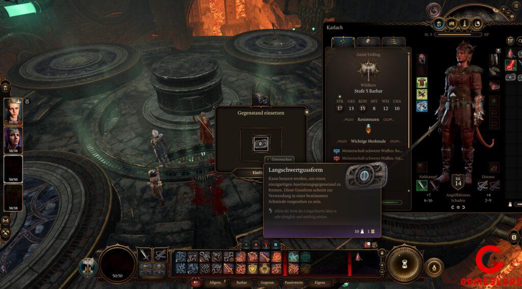Nach einer kurzen Zeit benötigt Gale regelmäßig magische Gegenstände, die ihr dann opfern müsst. Bereitet euch also gut vor.