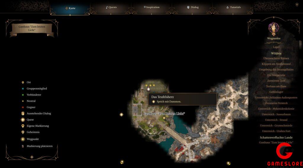 Auch in den Schattenverfluchten Landen, im Gasthaus zum Letzten Licht, kann man wieder auf Dammon stoßen. Dieses Mal hat er aber schlechte Neuigkeiten, denn Karlach droht zu explodieren.