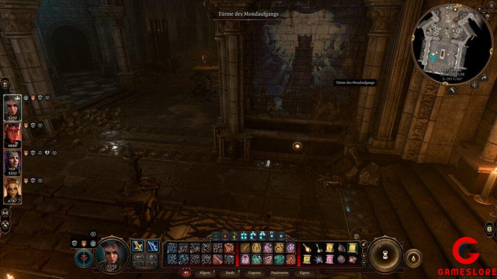 Dann könnt ihr Karsus‘ Schatzkammer betreten und die Annalen von Karsus an euch nehmen. Ihr erfahrt mehr über die Krone und könnt dies mit Gale im Lager besprechen. Dieser erwägt mehr Macht an sich zu reißen, er könnt aber auch mit Mystra zusammenarbeiten, um die Wogen zu glätten. Elminster taucht ebenfalls auf.