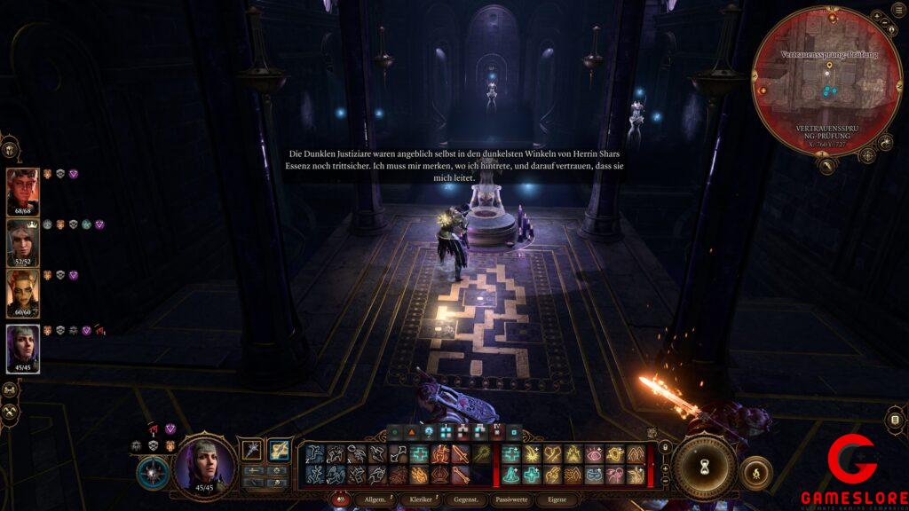 Beim Ältestenhirn angekommen, müssen erst einmal ein paar Würfe überstanden werden. Dann zieht einen der Imperator in das Prisma, um über das Leben von Orpheus zu entscheiden. Als Nächstes kämpft man sich durch Baldurs Tor und begibt sich weiter zum Ältestengehirn. Es reicht übrigens, wenn man einen Mindflayer, beispielsweise man selbst oder Karlach, damit sie nicht durch ihre Maschine stirbt, voranschreiten lässt. Alle anderen werden nachgezogen.