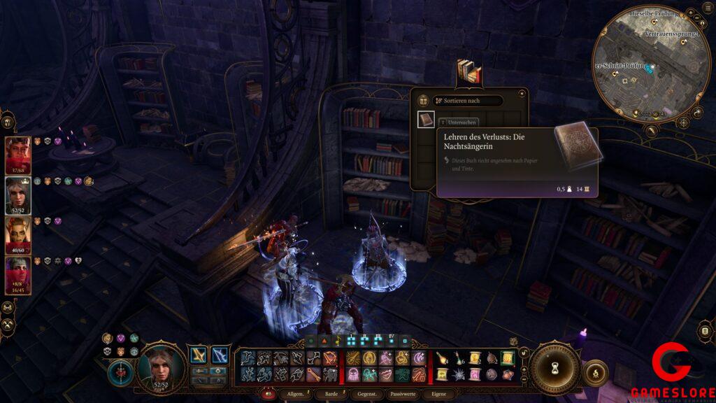 Solltet ihr Gale nicht in die Luft jagen, geht es direkt weiter mit ihm. Er möchte in Akt 3 in den Zaubererladen zu Tolna Foliantenhöker. Es gibt Bücher, die Wissen über die Hauptquest beinhaltet, allerdings sind diese gut verstaut. Ihr benötigt ihren Schlüssel aus ihrem Büro, das man am besten mit einem Unsichtbarkeitstrank hinbekommt.