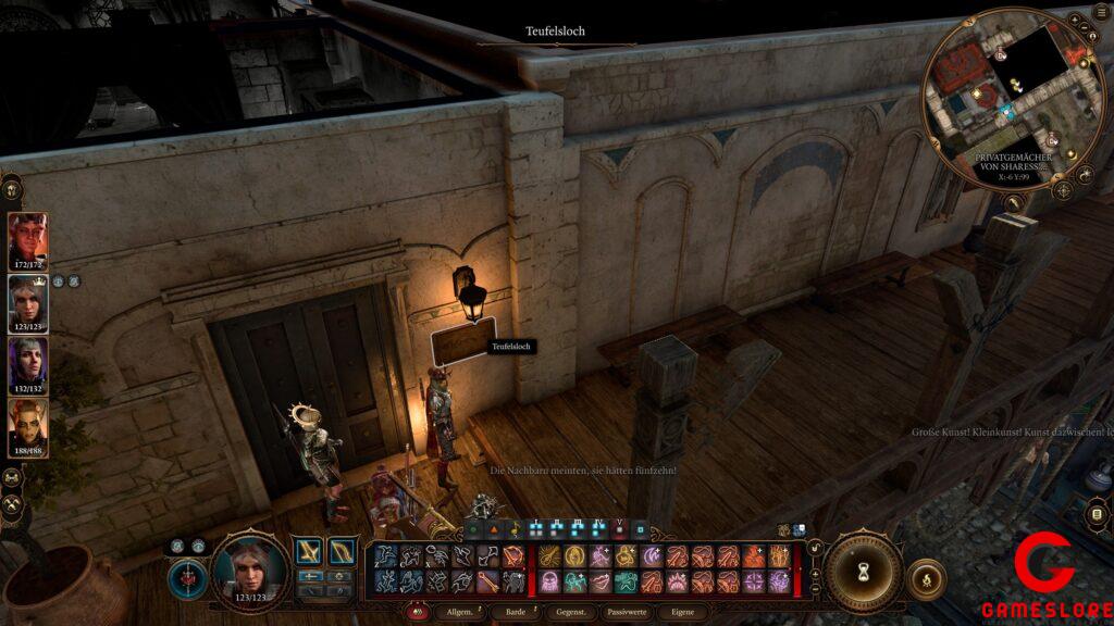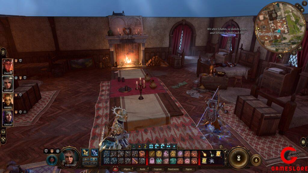 Um die Quest „Finde Schutz vor dem Schattenfluch“ zu erfüllen, könnt ihr einmal mit Jaheira im besagten Gasthaus sprechen. Diese verweist euch an Isobel, die im oberen Stockwerk verweilt und euch den Schutz gibt. Ihr könnt aber auch Kultisten überfallen und ihnen eine Laterne stehlen. Hier erhaltet ihr sogar Hilfe von Harfnern, wenn ihr zuerst im Gasthaus gewesen seid.