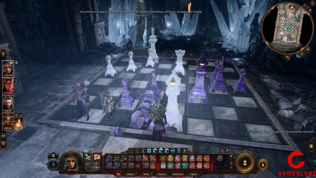 - Kammer der Strategie: Wenn ihr Gale mit an Bord habt, wird es richtig einfach. Dieser zeigt euch genau, wie ihr gewinnen könnt. Ihr habt 2 Züge Zeit, um den König zu Fall zu bringen.
