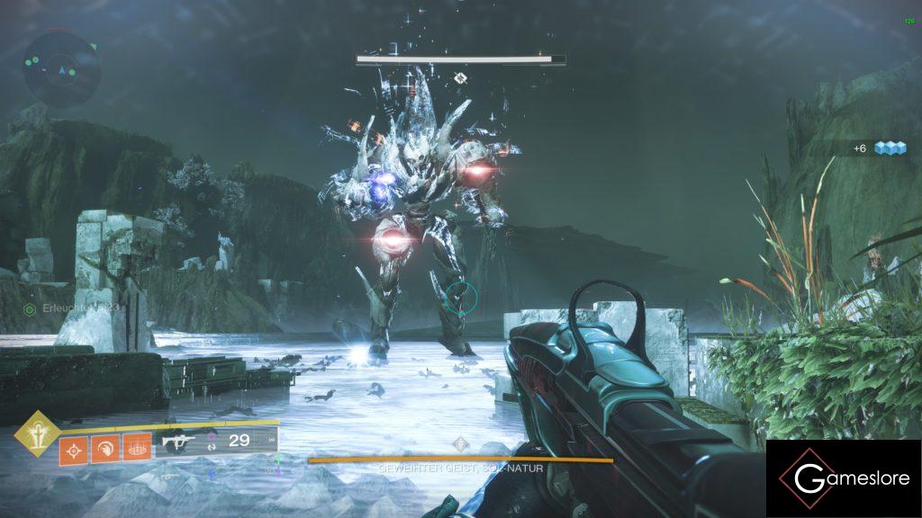 Teilt euch am Besten in zwei 3er Teams auf. Es gibt hier “ Team Gambit“ und „Team Augen“. Dazu aber gleich mehr. Da ihr hier Bossschaden machen müsst, empfehle ich euch ein Linear-Fusions-Gewehr, evtl., wenn ihr sie habt, eine Göttlichkeit.