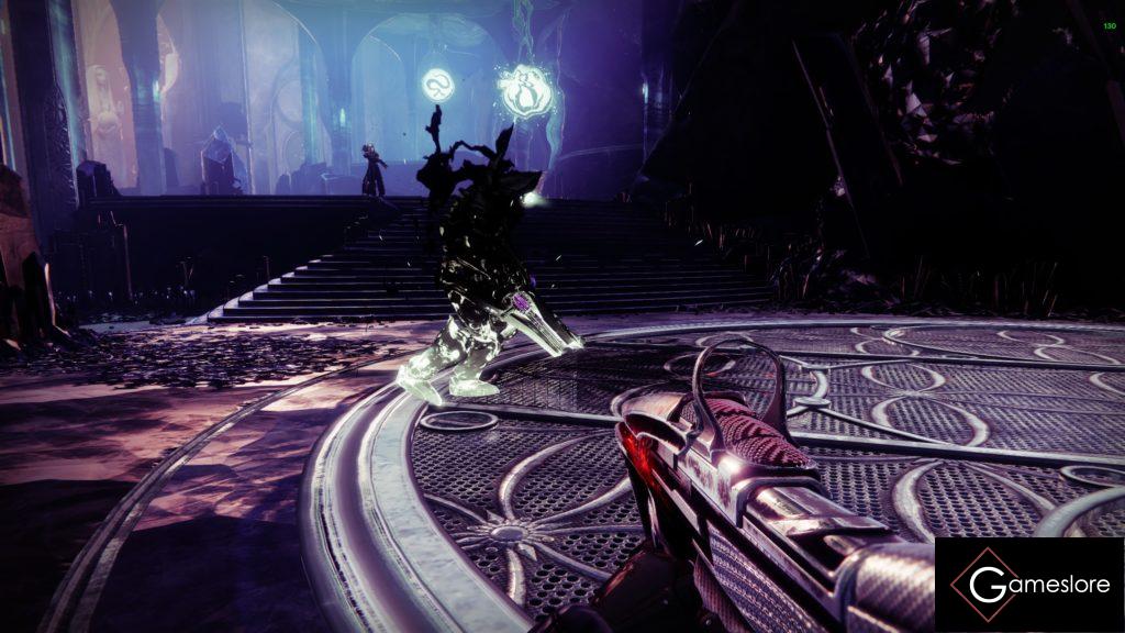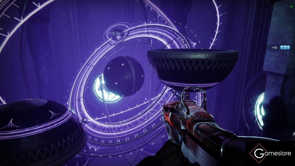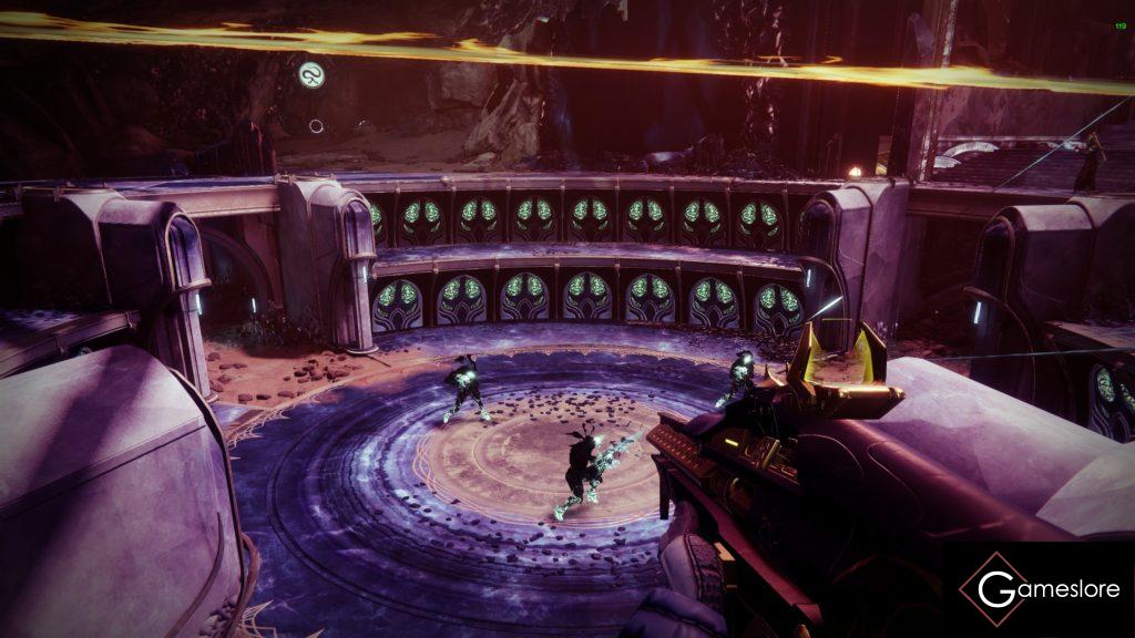 Jetzt geht bei einem der drei Spieler die Besessenenwand weg und man geht nun in den Raum rein, tötet alle Gegner und wartet bis der Boss kommt. Ein Captain, der einen Buff fallen lässt. Nimmt man den Buff auf hat man jetzt über der Super den An- oder Penumbra-Buff. Diesen muss man jetzt zu einer der passenden Bodenplatten bringen, die im Chat stehen und dort auf der Bodenplatte die “ Granatentaste“ drücken. Man muss dann nur schauen, wo man wieder in die Mitte kommt, denn wenn der Buff aufgenommen wird, geht beim nächsten Spieler die Wand auf und bei einem selber zu. Man fragt die Gruppe: „Wo komm ich raus“ und die Spieler sagen es einem. Man muss dann über die Tunnel (selbsterklärend) schauen, wie man wieder zur Mitte kommt.