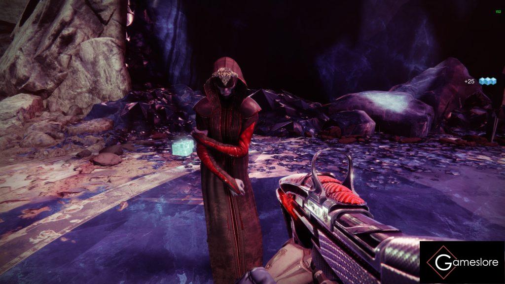 Ihr könnt euch bei Riven übrigens einen Checkpoint holen. Dann umloggen und dann könnt ihr sie pro Char ein Mal töten und am Ende auf den Maincharakter gehen und einmal den Herzrun laufen. Dann habt ihr pro Woche drei Schlüssel und könnt am Ende drei Kisten öffnen. Ist zum Farmen der Waffe sehr angenehm.