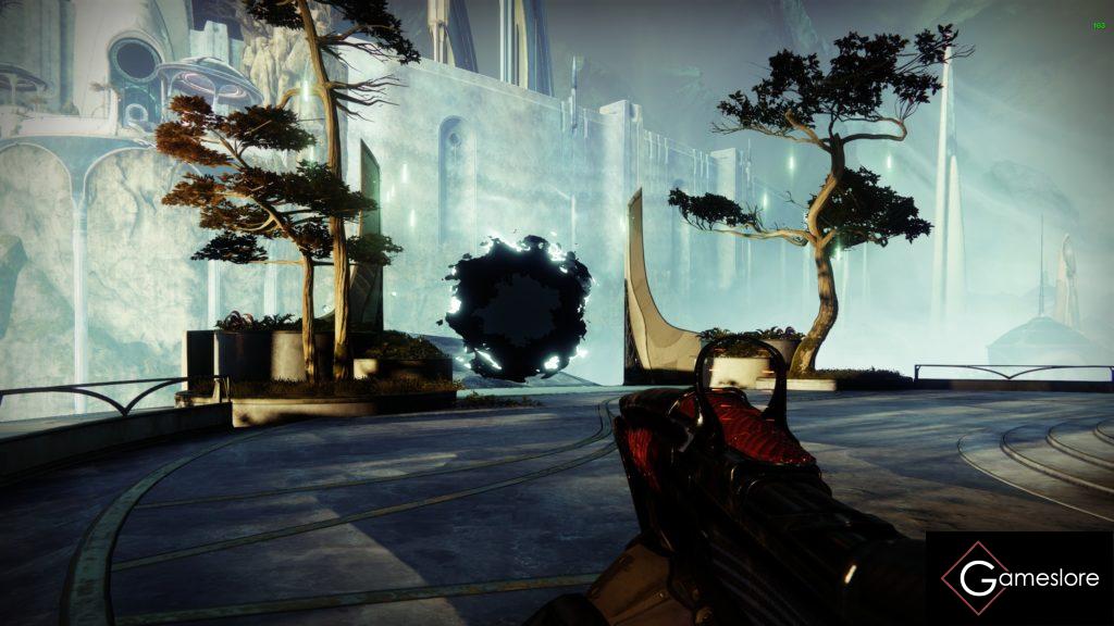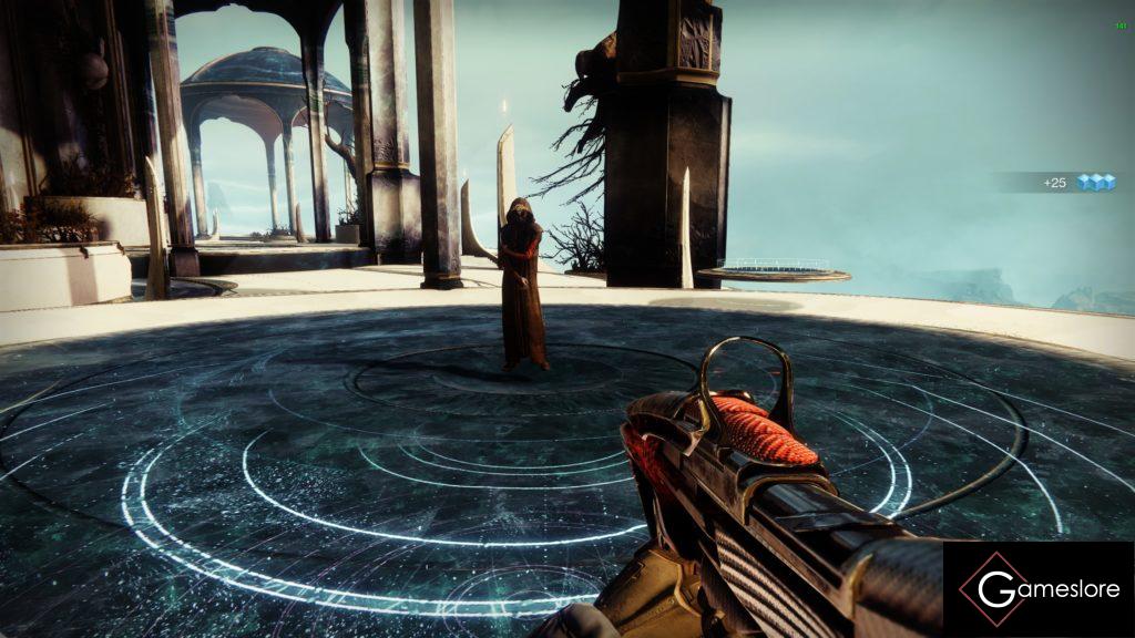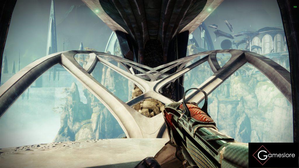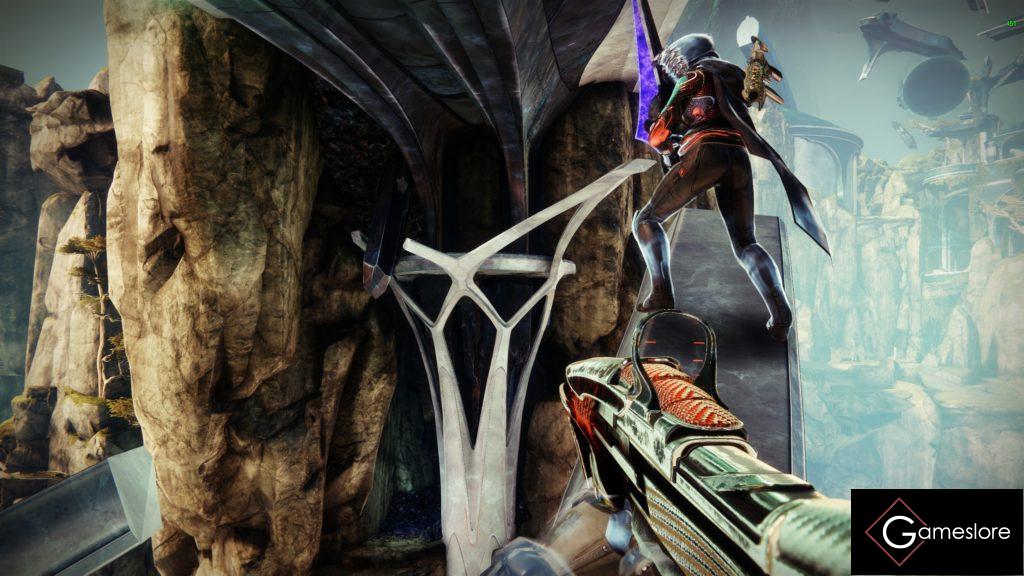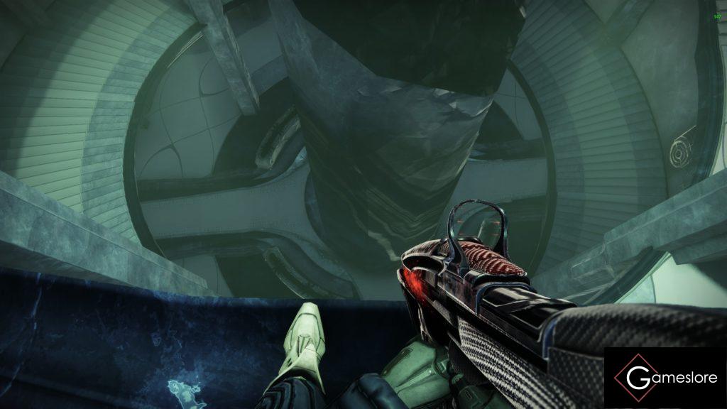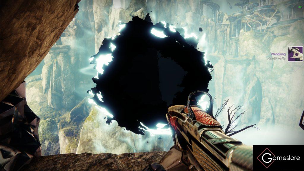 Durch die Aszendentenebene geht es weiter. Springt über die kleinen Trümmerteile, drehenden Kristalle usw., bis ihr oben in der Mitte auf dem Balkon wieder durch ein Portal springt. Achten zwischendurch seht ihr rechts ein Portal, aber das ist eine Finte.