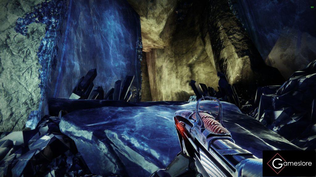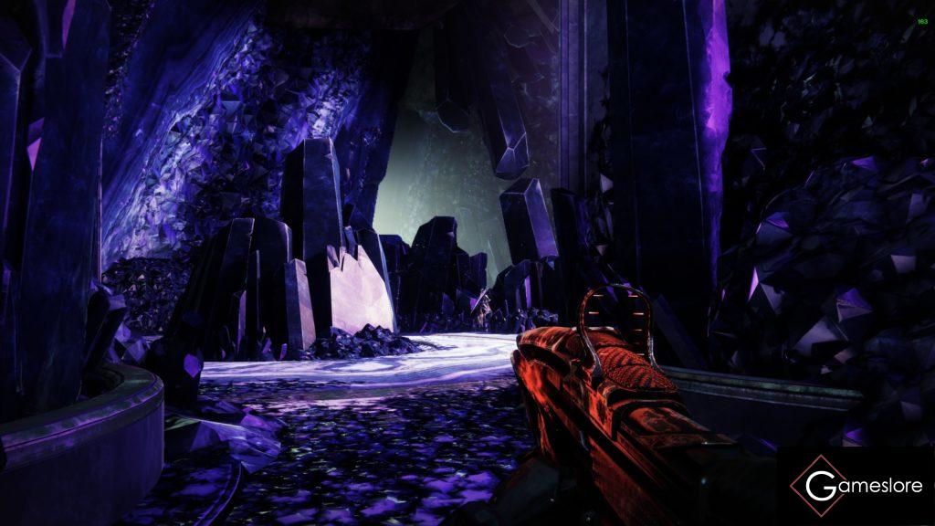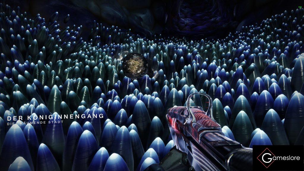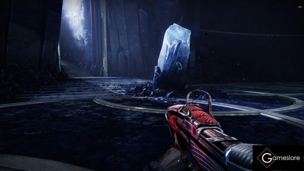 Und dann rechts durch den markanten Kristalldurchgang, durch die offene Tür. Flagge stellen und ihr habt den ersten Encounter erreicht.