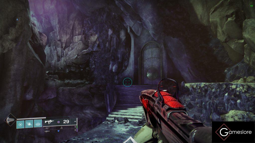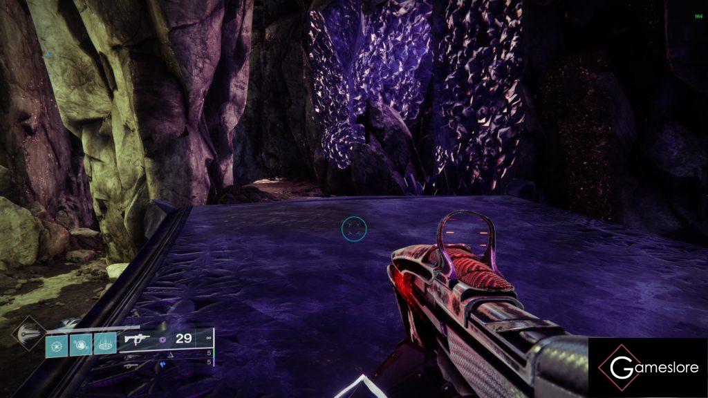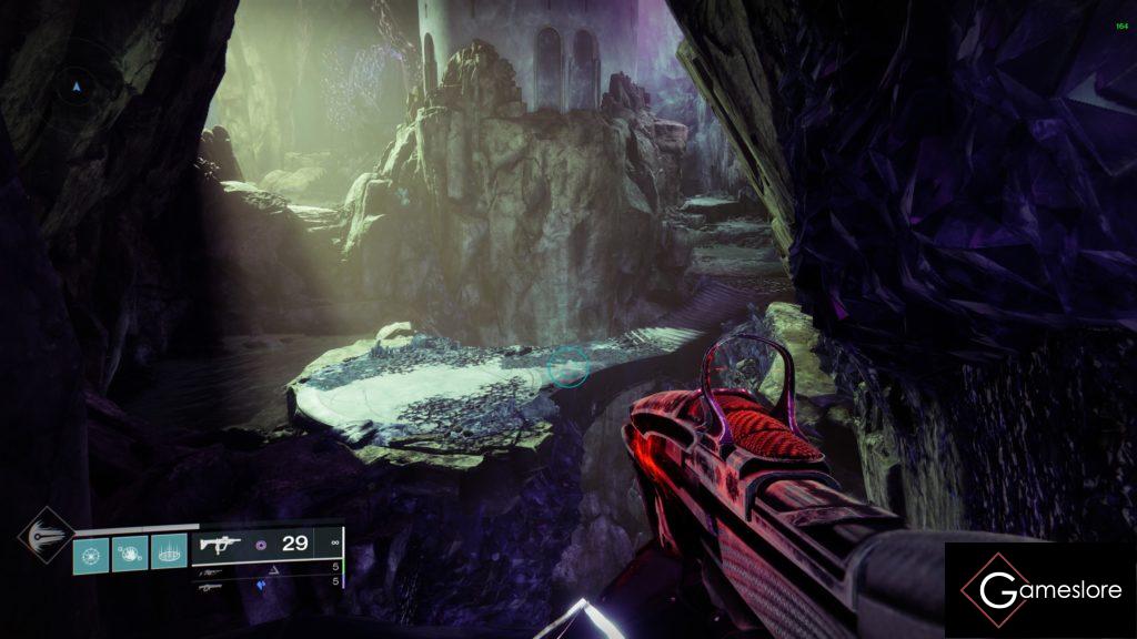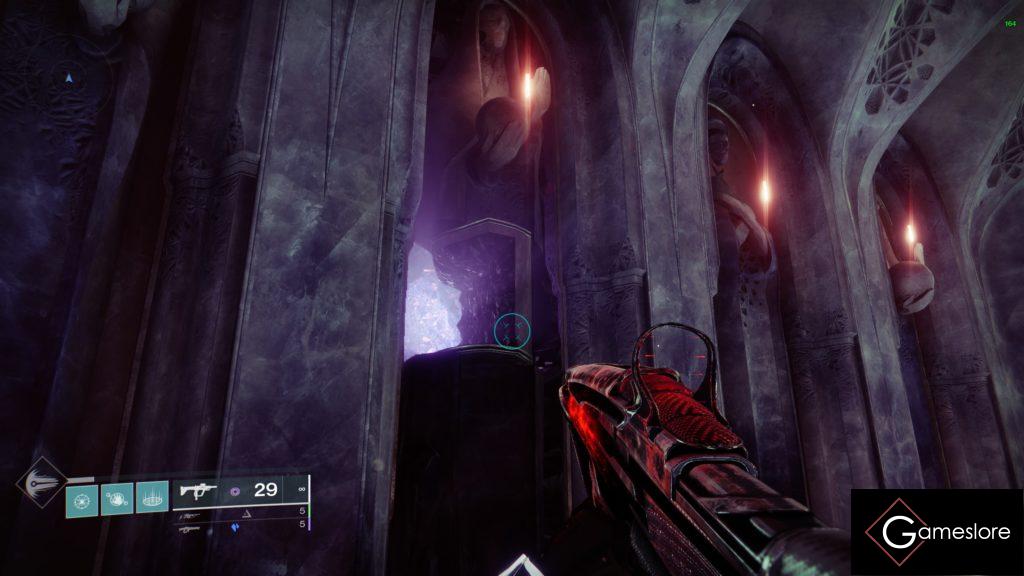 Es werden immer auf dem Weg Ads getötet. Säubert den Raum und sammelt euch an der Hexe. Sie ist vorerst immun. Es spawnen drei Kristalle. Drei Spieler nehmen diese auf und springen zeitgleich auf die kleinen Plattformen und schauen den von sich selbst aus rechten Spieler an und lasern ihn. Dadurch entsteht eine ununterbrochene Verbindung und nach ca. 2 Sekunden halten, platzt der Schild der Hexe. Alle Spieler machen Schaden auf die Hexe, bis sie 1/6 weniger Leben hat. Danach geht es den Weg weiter.