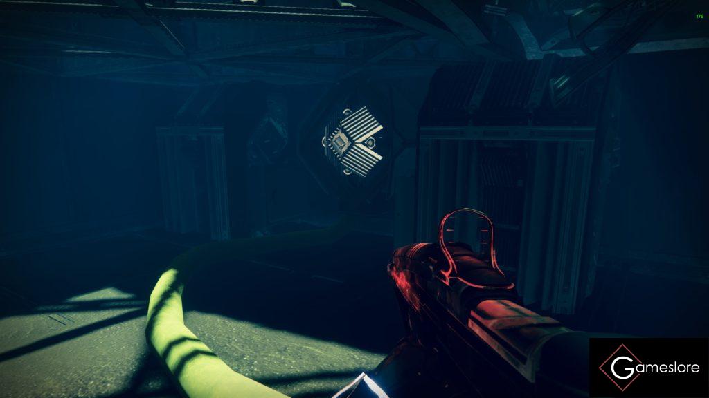 Habt ihr das getan, wollen danach zwei zufällige gelbe Kabel verbunden werden. Ihr startet mit der Verbindung im vorderen Raum und folgt den gelben Kabeln bis hinten zum Reaktorraum. Schießt dabei die ganzen Knoten ab, bis beide Verbindungen bestehen.