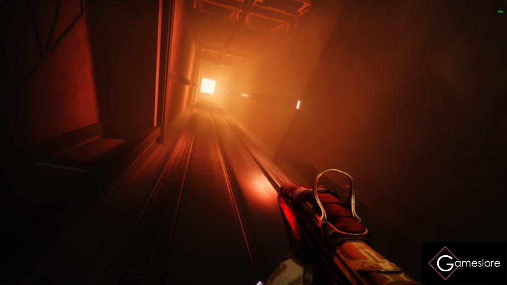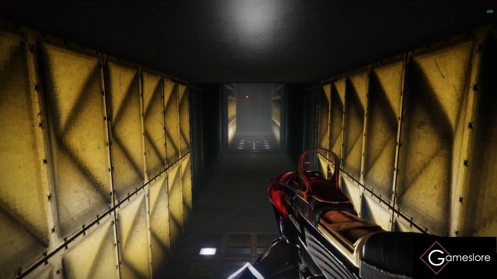 Weiter geht es durch den gelb beleuchteten Schacht.