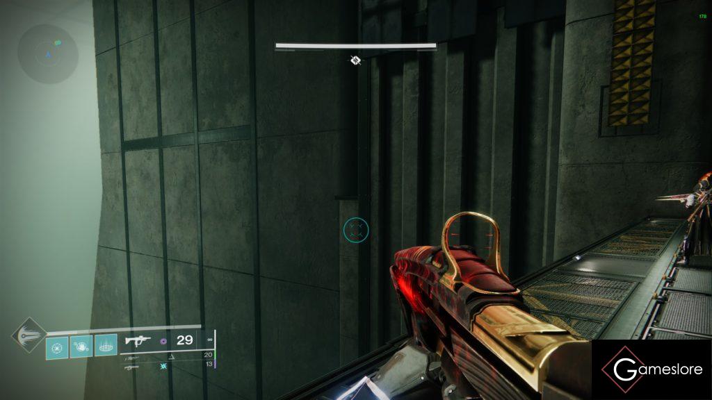 Der Trick dabei ist, dass an einer Seite der Wand ein Schacht ausgespart ist, wo ihr nicht sterben könnt und euch ganz bequem nach unten fallen lassen könnt.