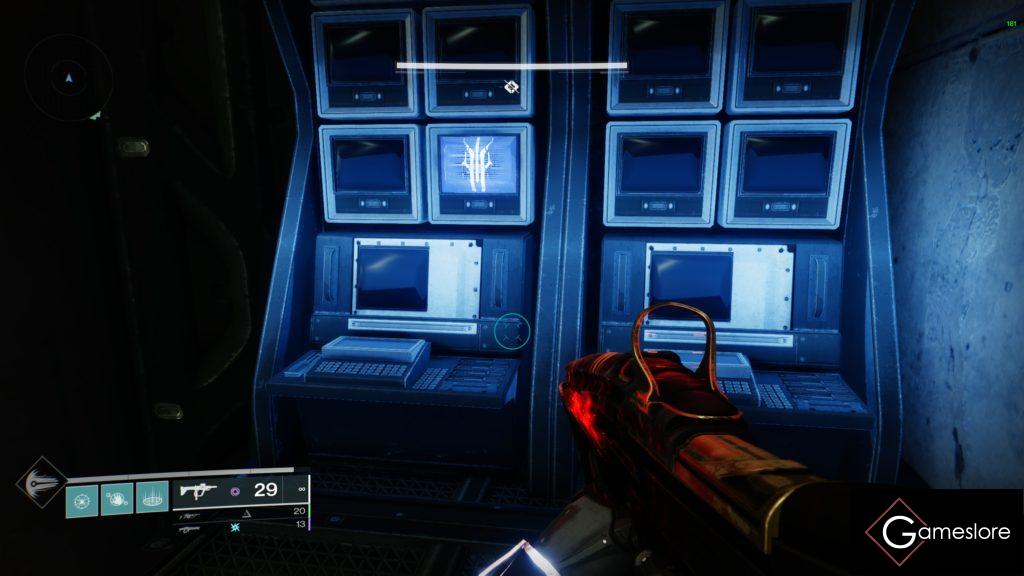 Oben in der nächsten Schaltzentrale, seht ihr dann an einem der Module den letzten Bildschirm Nr.6.