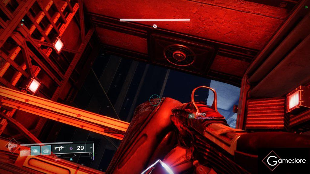 Habt ihr den Part gemeistert, geht es ganz unten durch den roten, offenen Schacht weiter.