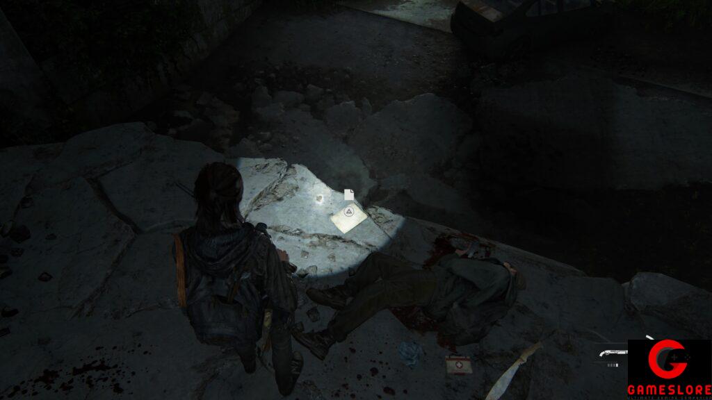 Gehe hinein, töte alle Gegner und gehe rechts durch einen kleinen Spalt im Zaun hindurch, um auf die gegenüberliegende Seite nach oben zu kommen und die Notiz aufzuheben.