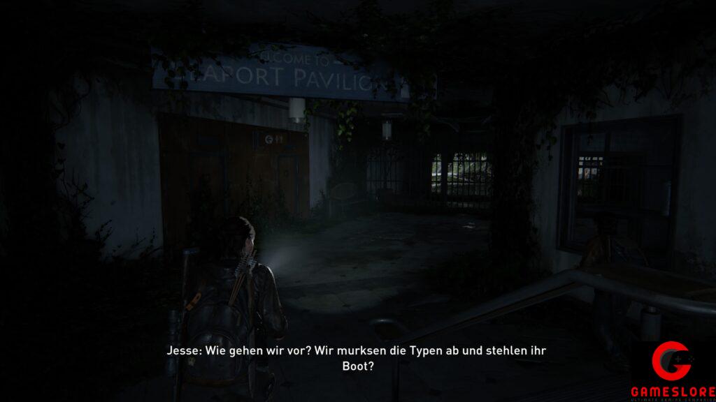 Nachdem sich Ellie und Jesse darüber unterhalten, ein Boot zu stehlen, siehst du folgende Location: