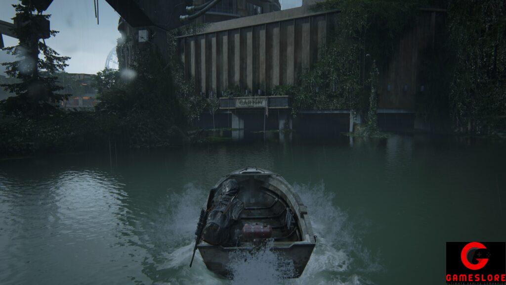 Sobald du alleine mit dem Boot unterwegs bist, kommst du auch schon an die erste Stelle, an der du ein Tor öffnen musst. Bevor du aber an der Kette ziehst und weitergehst, gibt es ein paar Sammelgegenstände.
