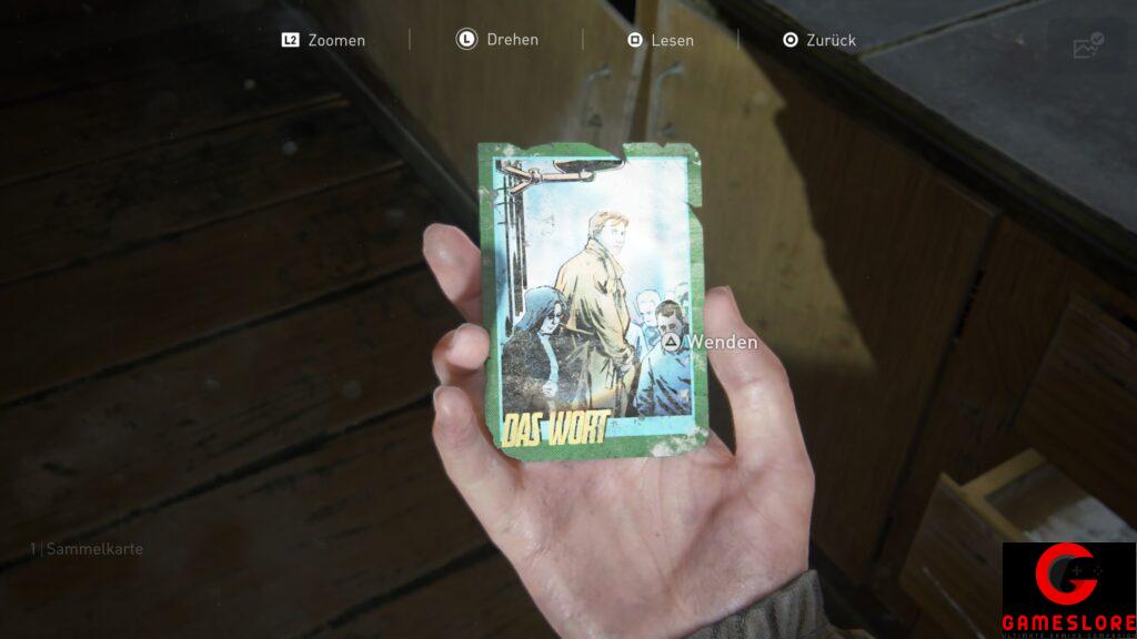 Gehe nun in die rechte Ecke desselben Raums. Dort findest du in einer Schublade die Sammelkarte.