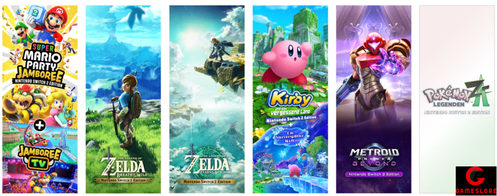 - Next-Gen-Update: Ca. 52 Nintendo Switch-Spiele werden zum Release auch mit der Nintendo Switch 2 kompatibel sein und weitere sollen kommen. Allerdings muss ein Upgrade-Pack gekauft werden (sog. Nintendo Switch 2 Edition), sollte man die Spiele bereits besitzen, um diese auf der Switch 2 im vollen Umfang spielen zu können. Wie teuer diese Upgrades werden, ist noch nicht bekannt. Einige Spiele, die nativ auch nochmals für die Nintendo Switch 2 neu veröffentlicht werden, wurden ebenfalls genannt, u.a. Zelda: Breath of the Wild sowie die Fortsetzung.