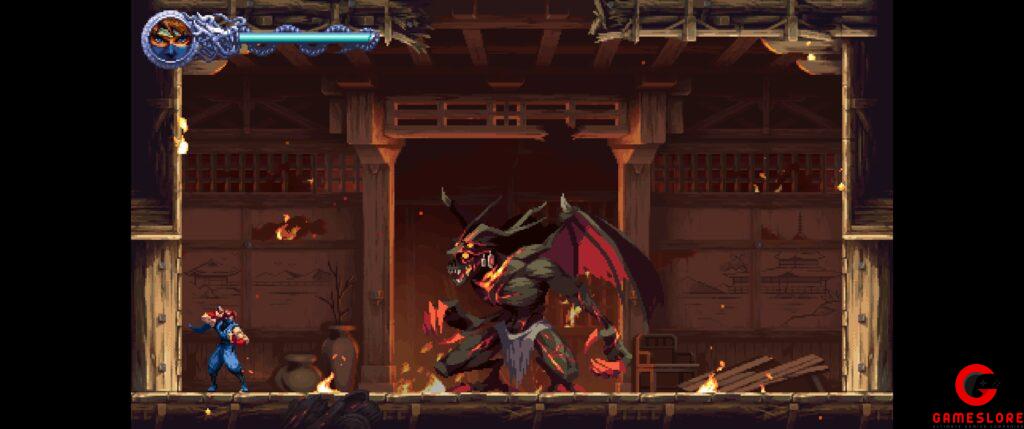 Was sofort auffällt: Ragebound ist ein Spiel zweier Seelen. Zum einen ist da das klassische Ninja Gaiden-Gefühl: schnelle, präzise Kämpfe, eine starke Geschichte rund um Ehre, Blut und Schatten. Zum anderen schwingt der brutale Plattforming-Spirit von Blasphemous mit – voller pixelgenauer Sprünge, tödlicher Fallen und dem Gefühl, dass jeder Zentimeter hart erarbeitet ist.