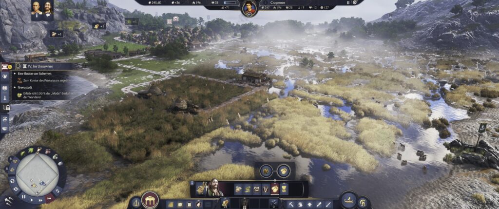 Die Dialoge und die Story sind an sich ganz gut, dienen aber in erster Linie als Vehikel für das Gameplay. Auch hier gilt: Die Story ist im Kern ein stark erweitertes Tutorial, in dem ihr das Spiel lernt. Natürlich bietet sie einige coole Momente, aber sie ist nicht besonders spektakulär oder cineastisch inszeniert. Es gibt interessante Charaktere und spannende Wendungen, doch am Ende ist es eben die Geschichte eines Aufbauspiels – und nicht die eines AAA-Rollenspiels.