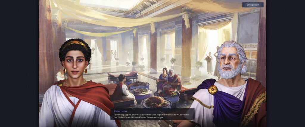 In Anno 117 könnt ihr entweder eine weibliche oder eine männliche Figur spielen. Ich empfehle an dieser Stelle schon einmal die weibliche Figur, denn ihre Story ist deutlich besser – zumindest im Prolog. Ihr werdet nämlich direkt zwangsverheiratet, und zwar mit einem römischen Prätor, der dem Kaiser nahesteht. Als männlicher Charakter habt ihr euch hingegen einfach nur hochgearbeitet. Allerdings bekommt ihr während der Story als weiblicher Charakter immer wieder Probleme aufgrund eures Geschlechts und wegen eures Mannes bzw. dessen Abwesenheit. Mehr möchte ich an dieser Stelle gar nicht verraten.