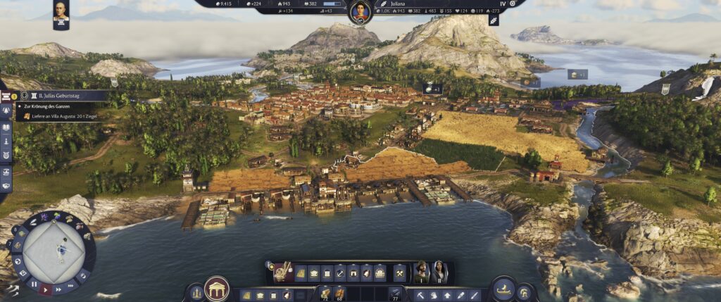 Alle Wege führen nach Rom, so sagt man – und genau dort ist Anno nun ebenfalls angekommen. Eine altehrwürdige Aufbaureihe, die vor allem auf Seehandel gesetzt hat. Das Ganze kommt von Ubisoft Mainz, fühlt sich auf den ersten Blick richtig gut an und macht Spaß. Leider gab es die ein oder andere Kontroverse, da in den Ladebildschirmen KI-generierte Artworks genutzt wurden. Gerade für Gegner von KI schmälert das den Spaßfaktor, zumal nicht wirklich klar ist, was alles nun KI-generiert ist. Kommen wir aber einmal abseits der ganzen Kontroverse zum Spiel selbst.