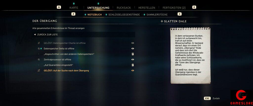 Kommen wir aber mal zum wichtigsten Punkt von Atomfall: die Quests und ihre Struktur. Wie ich im Storyteil erwähnt habe, müsst ihr, um die Story weiter voranzutreiben, Hinweise und Dokumente finden. Diese liegen natürlich nicht überall herum, und es gibt mehrere Hinweise zu ein und demselben Ziel – je nachdem, wie ihr spielt, wen ihr trefft und was ihr zu den Personen sagt. So könnt ihr in einer Mine einen NPC finden, der euch sagt, dass ihr Hinweise zu einer Forschungseinrichtung finden könnt, indem ihr einen überfallenen Konvoi untersucht. Oder aber ihr findet eine Händlerin, die euch den Eingang für einen kleinen Preis zeigt. Falls ihr aber vielleicht direkt in Richtung des Konvois gegangen seid, hättet ihr diesen zuerst finden können.