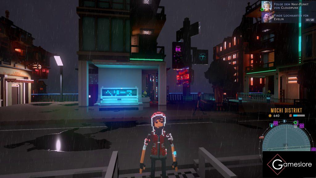»Cloudpunk« ist jetzt grafisch nicht das aufwendigste Spiel. Dennoch überraschen mich einige Fakten und das leider nicht zum Wohl des Spiels. Zumal die Welt bis auf die hübschen Lichteffekte nicht viel Grafik-Power zu bieten hat, läuft das Spiel nur mit einer nicht gerade verlässlichen 30fps Rate. Mini-Ruckler verstärken dazu leider das Gefühl eines nicht ganz sauberen Spielgefühls. Dazu kommen recht lange Ladezeiten, wenn man das Gebiet wechselt. Wieso es diese Ladezeit genau gibt oder wieso die Gebiete überhaupt voneinander getrennt sind, verstehe ich auch nicht.