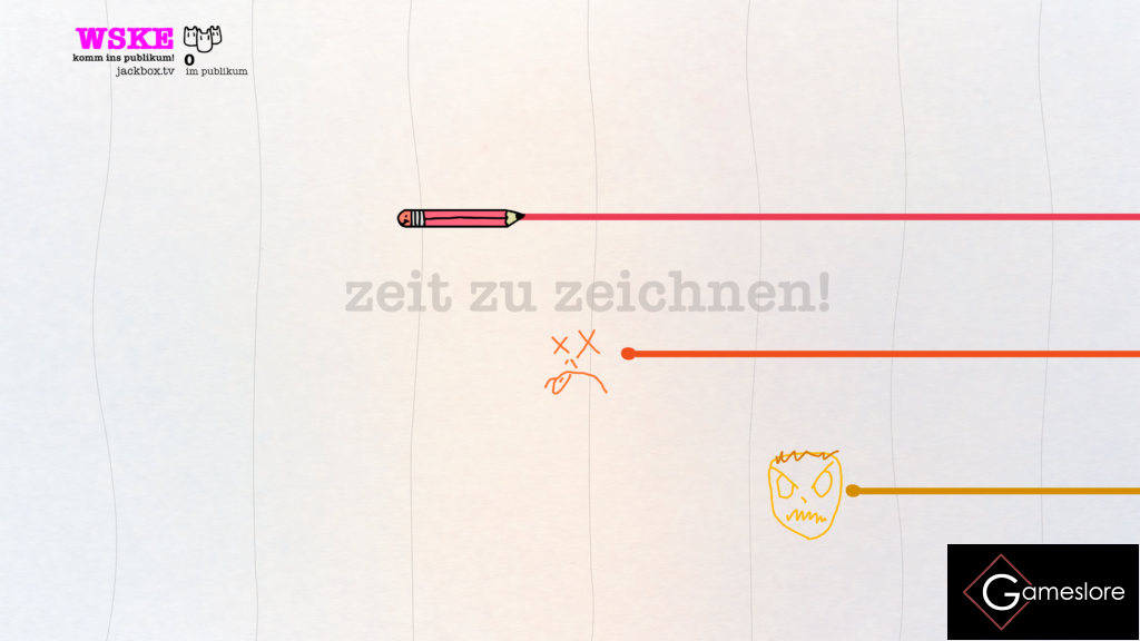 Drawful 2 reiht sich erneut in die Reihe der modernen „Kritzel“ Browser Spiele wie Skribbl oder Gartic Phone ein. Jedoch hat Drawful 2 einen entscheidenden Vorteil, den es super ausspielt. Im Gegensatz zu den anderen Vertretern des Genres kann man Drawful 2 mit bis zu 8 Leuten zu Hause auf dem Sofa spielen. Anderseits kann man auch per Twitch oder Discord das Ganze für seine Freunde streamen. Alles, was man zum Spielen braucht: einen Laptop, eine Playstation 4, eine Switch, eine Xbox One oder einen PC, wo man das „Spielbrett“ vorbereitet und dann für jeden einen Smartphone. Am Anfang jeder Runde malt sich jeder einen Avatar. Hat man das erledigt, kann es schon losgehen. Jeder bekommt einen Begriff, den es gilt, so gut es halt geht zu zeichnen. Das gelingt mal schlecht und mal absolut grausam. Aber das macht ja auch den Spaß aus. Dazu kommt, dass man für sein Kunstwerk nur wenige Sekunden Zeit hat. Ach und nicht zu vergessen, man kann bereits Gezeichnetes nicht mehr korrigieren und man hat nur zwei Farben zur Auswahl. Das mag jetzt einigen vielleicht im Gegensatz zu ähnlichen Spielen etwas rückständig wirken, aber dies war eine bewusste Entscheidung der Entwickler*innen. Ich selber empfinde das auch als etwas nervig, aber man gewöhnt sich an die Einschränkungen.