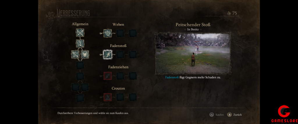 Natürlich ist die Spielwelt an sich extrem schön designt, aber die einzelnen Sprungpassagen sind einfach relativ simpel gehalten. Hier und da gibt es zwar ein Rätsel, das übersteigt aber nicht die Komplexität von „mache Ding A sichtbar und schiebe es vor Turm B, auf den du vorher Steine schleudern musstest, damit du später von Ding A an Turm B springen kannst.“ Zusätzlich könnt ihr noch einige Storyfetzen finden, die euch ein bisschen mehr Lore geben und Floofs. Mit diesen könnt ihr eure Fähigkeiten verbessern und zum Beispiel einen aufgeladenen Angriff noch einmal aufladen. Macht euch aber nicht über zu viele Möglichkeiten Hoffnung, denn es gibt insgesamt neun allgemeine Fähigkeiten und für jeden Zauber von Hazel gibt es drei Verbesserungen. Diese Floofs sind größten Teils als Boni im Kapitel versteckt, ihr bekommt jedoch für jeden Kampf einige als Währung, damit ihr hier und da eine Fähigkeit aufwerten könnt.