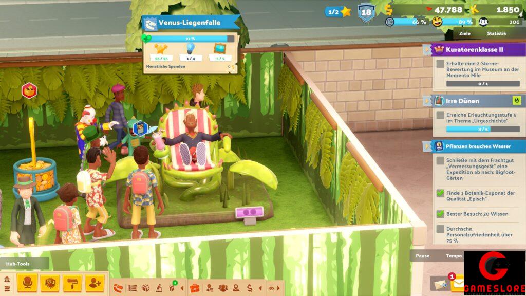 Diese bekommst du jedoch nicht einfach so. Du musst Expert:innen anstellen, die auf Expeditionen gehen und im besten Fall hochwertige Exponate finden, die du dann ausstellen kannst. Das lockt neue Besucher:innen an – und mit ihnen kannst du Geld verdienen.
